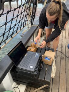We set up beside the cargo ships Ide Min and Avontuur, both of which transport fair-trade goods like coffee, cacao, and rum under sail. Standing alongside these pioneers reminded us that traditional sailing isn’t just a relic of the past, it’s a powerful way forward for a sustainable future, whether through cargo or science.