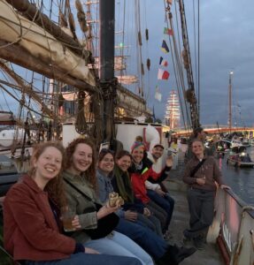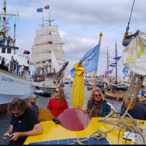 The next morning, Yvonne, Josien, and Fabienne joined with our guests, and soon we set sail into a breathtaking sea of Tall Ships, clippers, and countless small boats. Captain Wiebe expertly navigated through the lively maze of vessels — and yes, we even hoisted the sails! We had planned to take a microplastic sample, but with so much traffic on the water, safety came first. Still, the sense of unity on the water made it an unforgettable moment.
